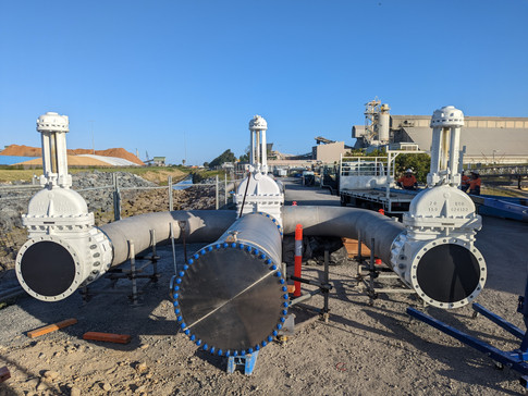 Onsite manufacture and installation of over 2km of DN600 stainless steel piping, alongside pumping stations, truck load-out gantries, and a new port terminal for bulk fuel ship unloading.